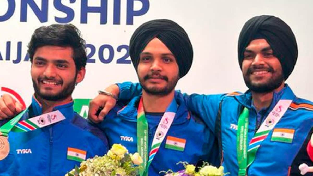 துப்பாக்கி சுடுதலில் ஆடவர் 10 மீட்டர் ஏர் பிஸ்டல் பிரிவில் இந்திய ஆடவர் அணியின் சார்பில் சரப்ஜோத் சிங், அர்ஜூன் சிங் சீமா மற்றும் ஷிவ நர்வால் ஆகியோர் களம் கண்டனர். இவர்கள், போட்டியின் போது இலக்கை நோக்கி துல்லியமாக சுட்டு புள்ளிகளை குவித்ததுடன், சக போட்டியாளர்களுக்கு கடும் சவால் அளித்தனர்.